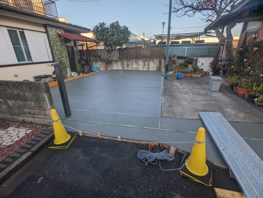 門まわりのコンクリート舗装も併せて行い駐車時のストレス軽減や防犯性の向上にもつながっています。