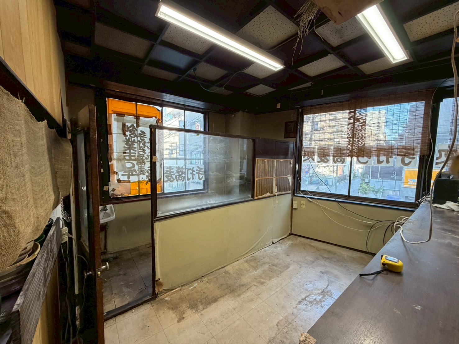 まず既存のパーテーションを撤去し、空間を一体化しました。